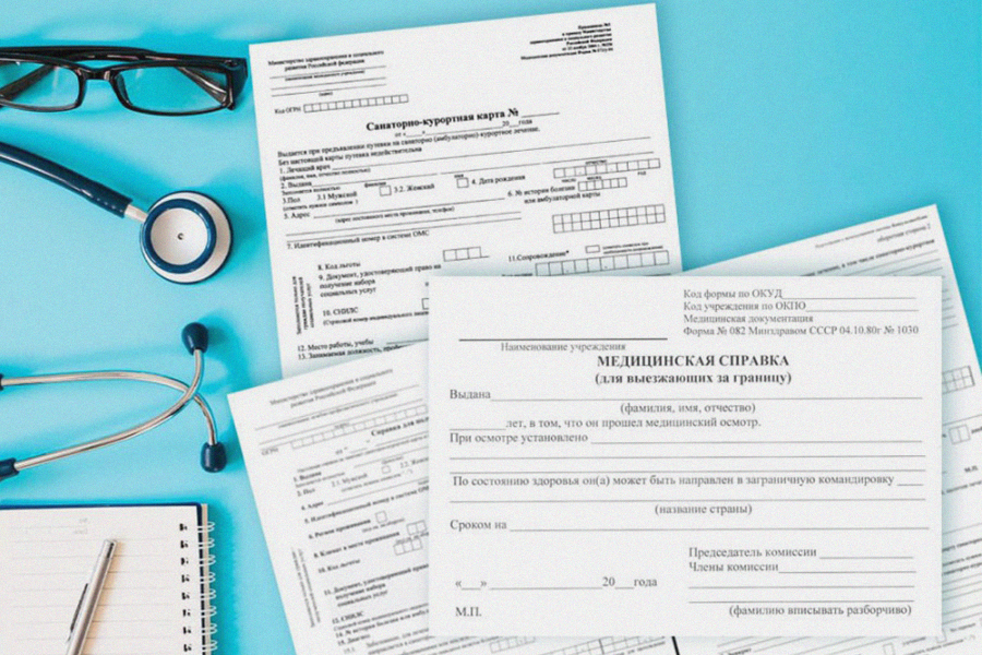 Свидетельство о профилактических прививках (форма № 156/у-93); Медицинское заключение (форма № 086/у); Медицинская выписка из карты пациента (форма № 027/у); Справка для оформления путевки (форма № 070/у); Документ, подтверждающий временную нетрудоспособность (форма № 095/у) и другие.